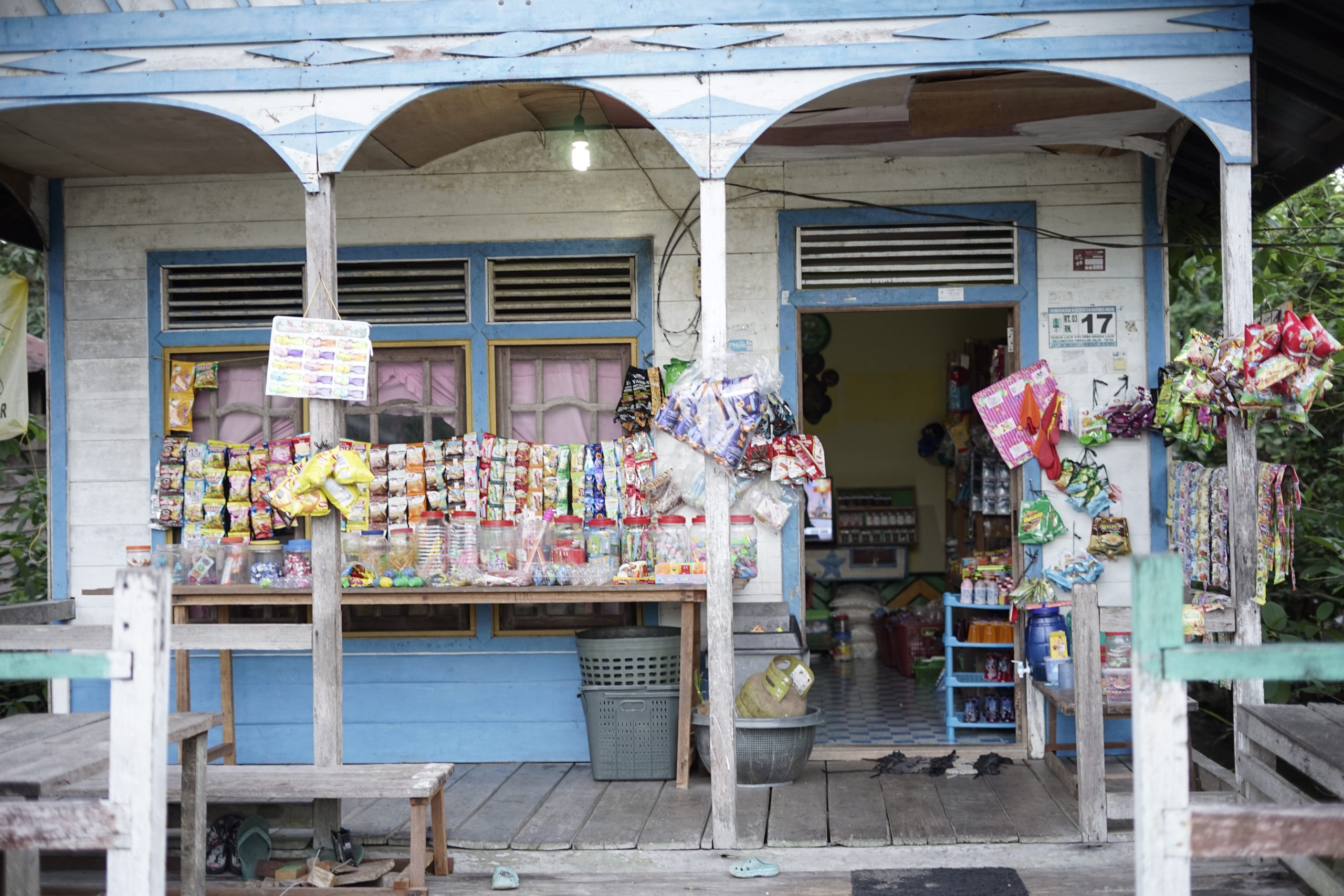A small food stall selling fast food made from ultra-processed ingredients with cheap prices and distributed to remote villages. Kapuas Hulu. 2023. Photo by Hardiyanti.